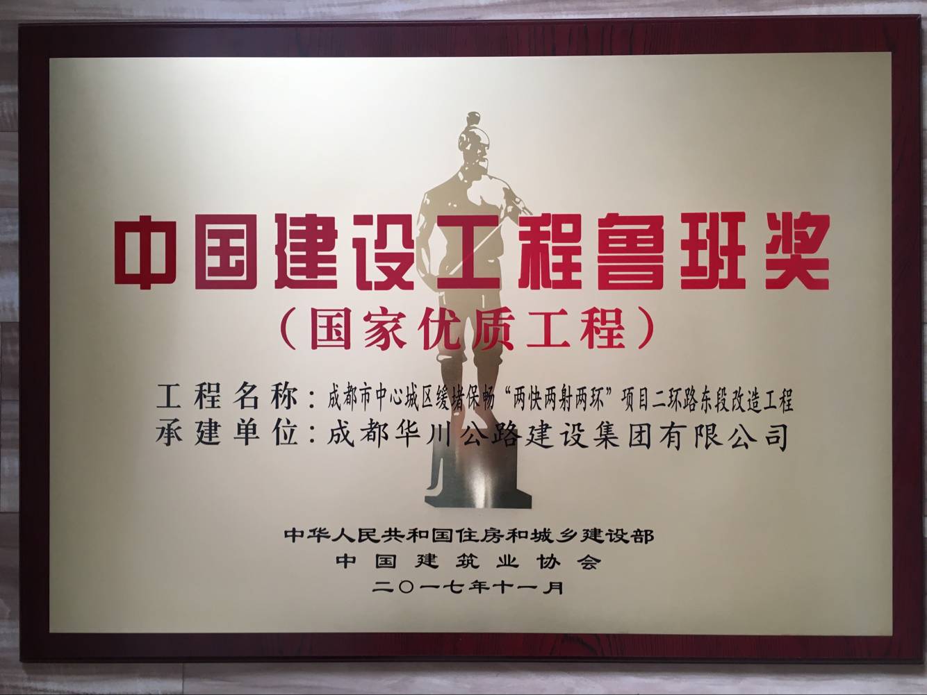 11月5日至7日,紀念魯班獎創(chuàng)立30周年暨2016~2017年度創(chuàng)精品工程交流會在北京舉行,會上宣讀了《住房和城鄉(xiāng)建設(shè)部關(guān)于2016~2017年度中國建設(shè)工程魯班獎(國家優(yōu)質(zhì)工程)獲獎單位的通報》,集團承建的“成都市中心城區(qū)緩堵保暢‘兩快兩射兩環(huán)’項目二環(huán)路東段改造工程”榮獲2016~2017年度中國建設(shè)工程魯班獎。