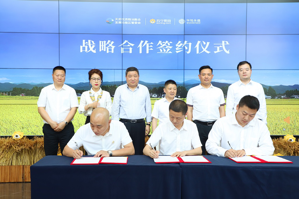 通過三方戰(zhàn)略合作,華地永盛將充分利用線下蘇寧小店、蘇寧生鮮、線上蘇寧超市等全渠道平臺,把崇州優(yōu)質(zhì)糧油打造成覆蓋全川的爆款產(chǎn)品,建立“立足崇州、服務(wù)全川、走向全國”地天府好米綜合運營平臺,實現(xiàn)“產(chǎn)、供、銷”一體化的全面保障機制,進一步推進崇州優(yōu)質(zhì)農(nóng)產(chǎn)品從良田走向餐桌,豐富消費者餐桌內(nèi)涵,打造健康飲食文化。
