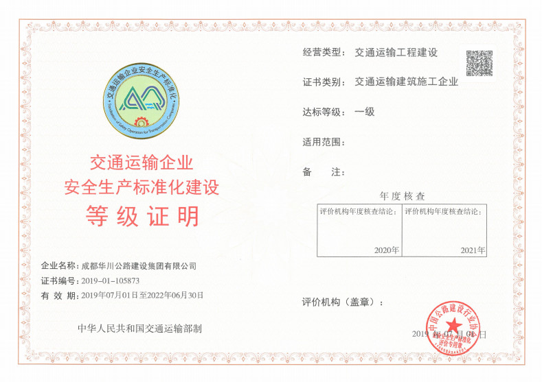 按照集團(tuán)公司統(tǒng)一部署,于2018年10月啟動(dòng)達(dá)標(biāo)創(chuàng)建工作。通過(guò)公司自查、備考、評(píng)價(jià)、驗(yàn)收階段,穩(wěn)步推進(jìn)標(biāo)準(zhǔn)化達(dá)標(biāo)的各項(xiàng)工作開(kāi)展。2019年4月9日-11日,交通運(yùn)輸部達(dá)標(biāo)評(píng)審專家組對(duì)集團(tuán)公司進(jìn)行一級(jí)達(dá)標(biāo)驗(yàn)收,對(duì)集團(tuán)安全生產(chǎn)標(biāo)準(zhǔn)化工作給予充分肯定。最終,集團(tuán)公司順利通過(guò)交通運(yùn)輸建筑施工企業(yè)安全生產(chǎn)標(biāo)準(zhǔn)化達(dá)標(biāo)認(rèn)證考核。