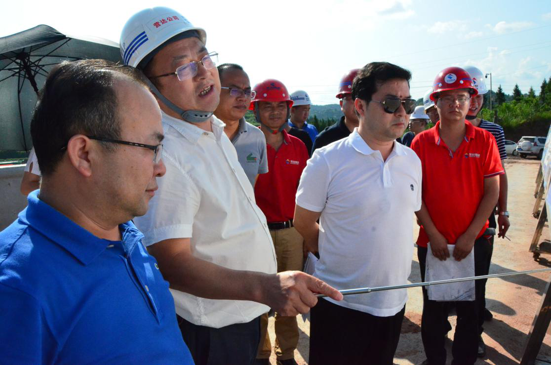 7月31日,沖刺年底通車目標(biāo),三大攻堅戰(zhàn)首戰(zhàn)“大戰(zhàn)60天”即將告一段落,奮戰(zhàn)90天大幕即將拉開大幕之際,集團董事長、總裁謝應(yīng)文親臨一線,督戰(zhàn)營達項目。營達公司總經(jīng)理謝應(yīng)武、指揮長甘立剛、LJ03、LJ04合同段項目負(fù)責(zé)人陪同視察。