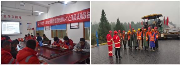 11月17日,在營達公司、營山代表處、監(jiān)理試驗室、2駐地辦領(lǐng)導(dǎo)的關(guān)注及指導(dǎo)下,華辰公司營達LM01合同段完成瀝青SMA-13上面層試驗段鋪筑工作,標(biāo)志著營達路面一標(biāo)進入路面施工最后沖刺階段。
